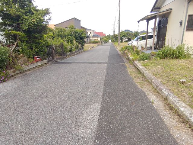 前面道路の様子。公営水道は道路から引込となります。