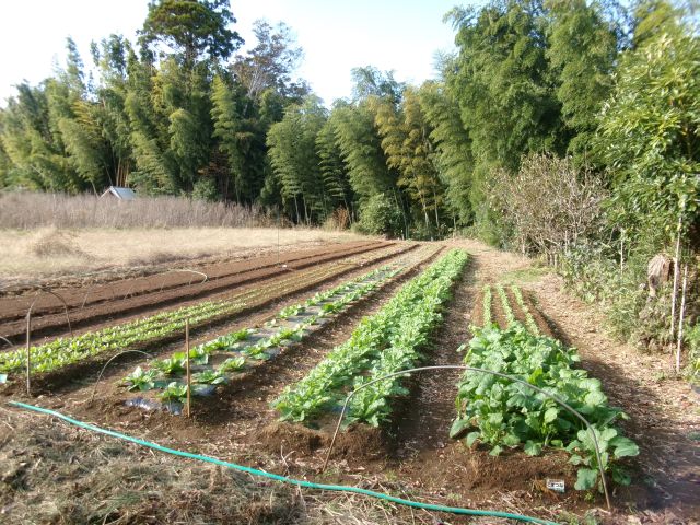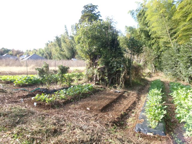 敷地の中央に建物3棟があり、その両脇に畑、奥が竹林という土地構成。