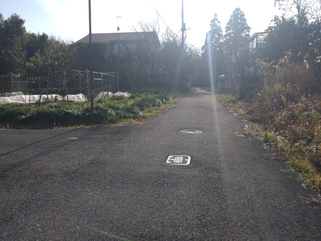 前面道路の様子。田園地帯を抜けた先にあります。