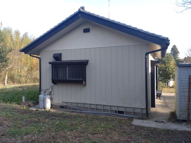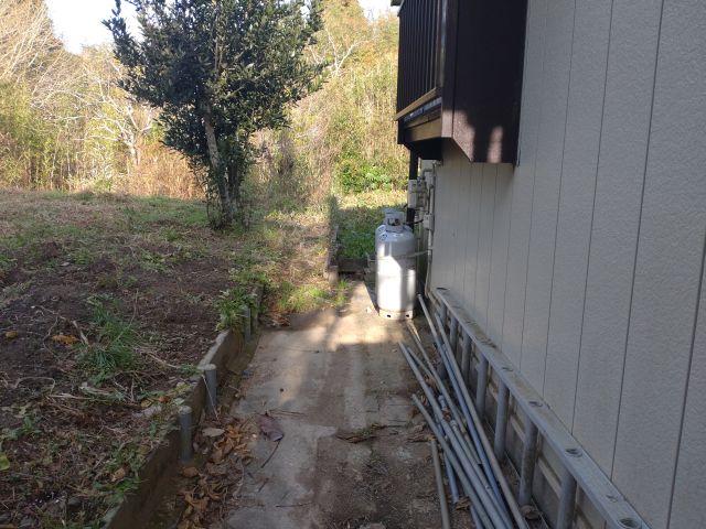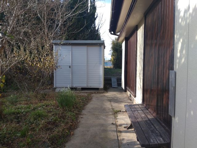 建物側面。奥に物置があります。