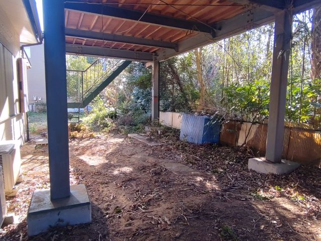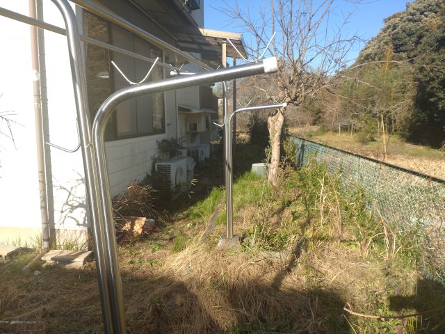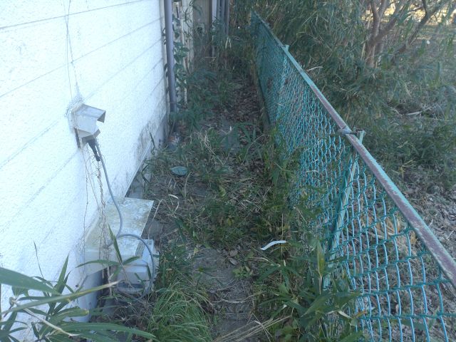 カーポート裏の庭。お隣の建物は飲食店(土日のみ営業)
