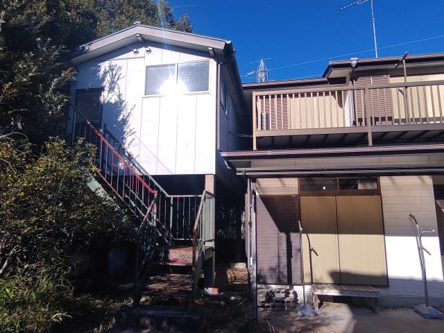倉庫はいわゆる中二階作り。玄関が階段を上った先にあります。