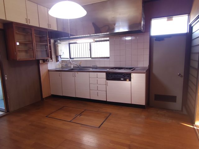 キッチン。勝手口・床下収納付き。