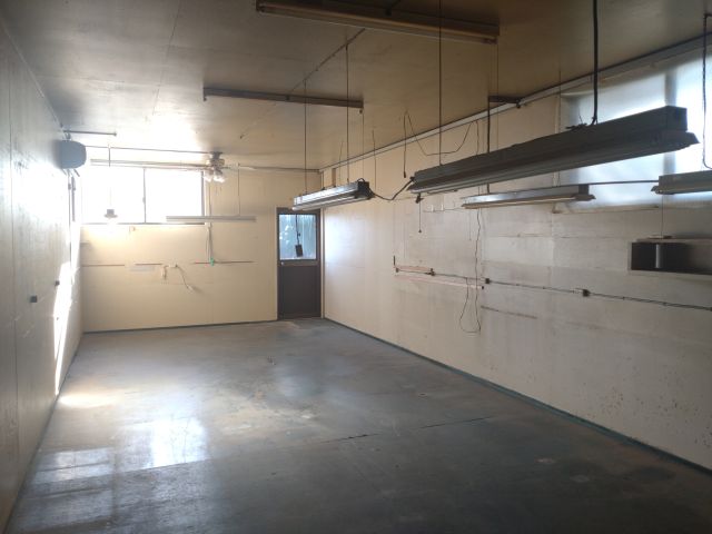 便宜上、倉庫と呼称していましたが、実際は作業場(金物の工場)として使われていたとの事で、照明器具が沢山備え付けられています。